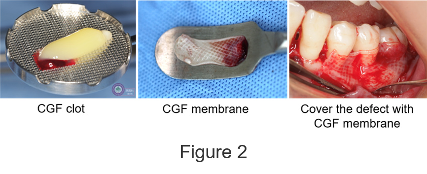 Concentrated growth factor (CGF) is a kind of autologous platelet concentrate that has recently been used for bone healing therapy. The application of CGF in periodontal surgery can promote periodontal tissue regeneration (Figure 2).
