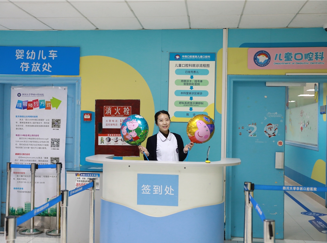 As the first pediatric dental specialty in China, the Department of Pediatric Dentistry, West China Hospital of Stomatology, was established in 1948. To date, this Pediatric Dental Center is renowned in the whole country for its first-class domestic medical service, education, and clinical and basic research. The department was authorized as the Children's Oral Diseases Diagnosis and Treatment Center in Western China, awarded National Key Clinical Specialties in 2013, and qualified as the National Pediatric Dentistry Good Clinical Practice Center. The department has 59 members, including 24 dentists and 35 nurses. Among the dentists, there are 4 professors, 8 associate professors, and 12 lecturers, including 20 with overseas study experience. All the staff members win a prestigious reputation for their high level of education, skilled clinical technology, and serving patients with love and responsibility.