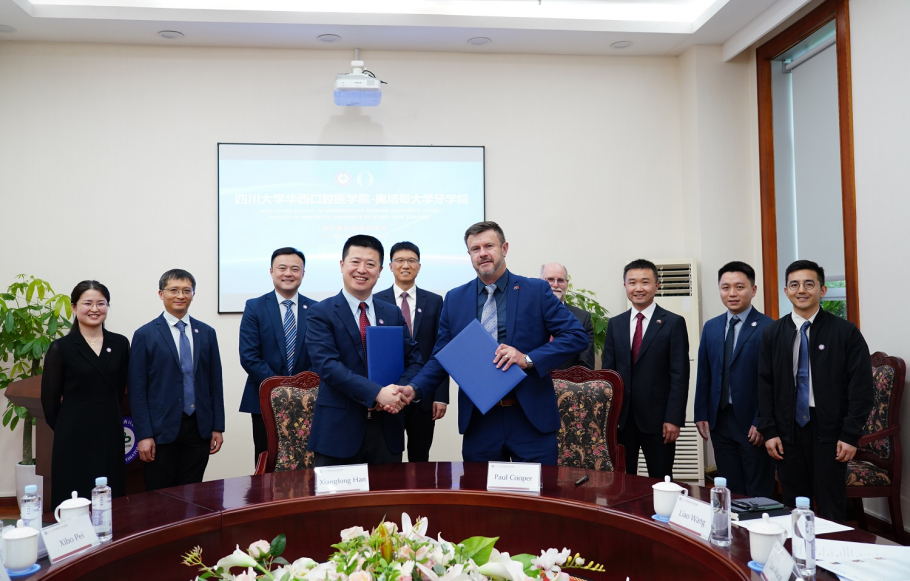 Leaders from both institutions held productive discussions to enhance bilateral cooperation across multiple dimensions. The visit reached its highlight with a landmark signing ceremony where Professor Xianglong Han, Dean of WCSS, and Professor Paul Cooper, Dean of Faculty of Dentistry, UoO, formally established a Memorandum of Understanding (MoU). This agreement creates a robust institutional framework for long-term academic partnership between these two globally-recognized dental institutions.