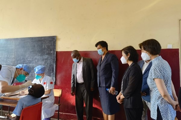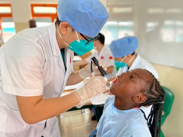 On April 27th , the launching ceremony of the EICISA Project was held at Maria Jesus primary school in Sao Tome and the medical team members examed the oral cavity of students. Chinese Ambassador Xu Yingzhen, Sao Tomé Minister of Education and Higher Education Sr. Rodriguez, and Sr. Edgar Neves, Minister of Health attended the activity. The team's work is part of a broader effort to gather precise figures to evaluate the total caries prevalence rate in STP and statistically support its prevention of dental decay and application for correlative international aid.