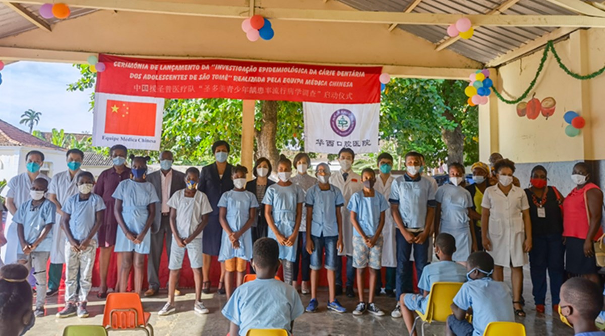 Recently, the Epidemiological Investigation on Caries Incidence of Sao Tomé Adolescents Project (EICISA Project) was brought to a successful close. Doctor Que Lin and nurse Jia Mao from West China Hospital of Stomatology Sichuan University, members of the 16th Chinese medical team (Sichuan group), were in charge of the EICISA Project. The medical team set out to the Democratic Republic of Sao Tome and Principe (STP) and devoted two months to carrying out the investigation of dental caries status in a sample group of amounting to 2000 students from over 70 classes in six districts of Sao Tomé Island.