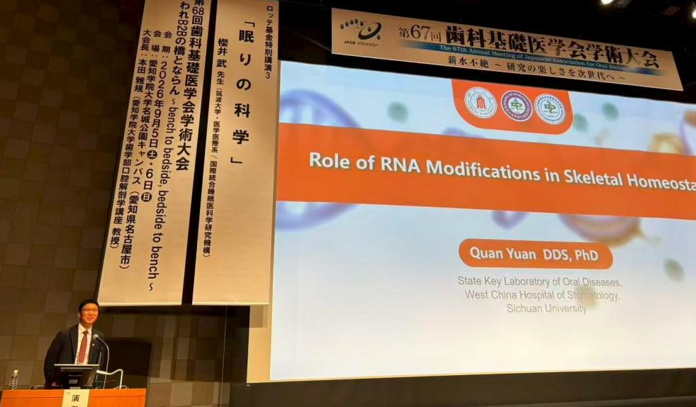 The 67th Annual Meeting of the Japanese Association of Oral Biology was held from September 4 to 6 in Kyushu, Japan. Professor Yuan Quan, Associate Dean of the West China School of Stomatology, was invited as a keynote speaker and presented his latest research findings on "Role of RNA Modifications in Skeletal Homeostasis," which stimulated in-depth discussion among attendees.