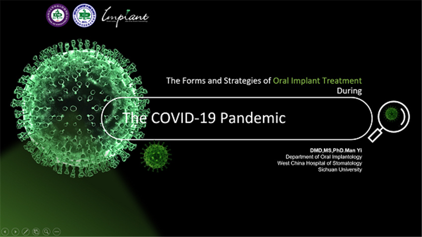 On April 22, 2020, Professor Man Yi, the director of the Department of Oral Implantology of our hospital, was invited to participate in a global online conference organized by the European Association for Osseointegration (EAO), one of the world's largest oral implant associations, introducing epidemic prevention and control measures of West China Hospital of Stomatology, dental implant diagnoses and treatment, and response strategies.