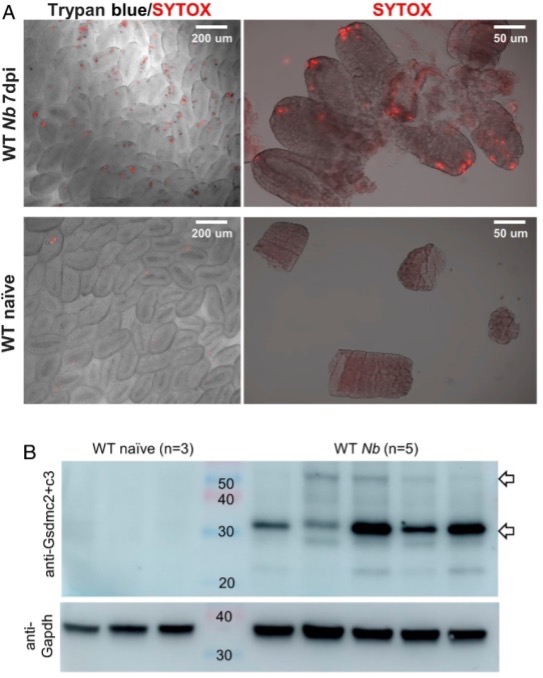 Gasdermin proteins are key effectors of pyroptosis, a highly inflammatory form of programmed cell death triggered by intracellular and extracellular pathogens, which represents a prominent antimicrobial response. Researchers identified pyroptosis-effector gasdermin C genes (Gsdmcs) as type 2 cytokine-regulated target genes in intestinal epithelial cells.