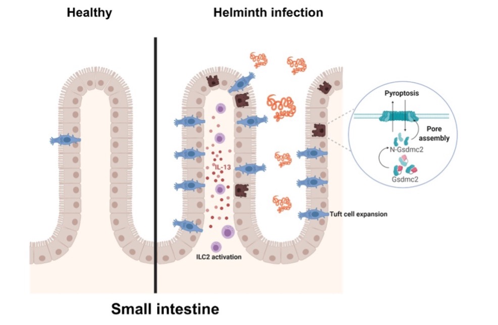 Researchers from West China School of Stomatology (WCSS), Sichuan University revealed that the up-regulated gasdermin C genes (Gsdmcs) family may be major effectors for type 2 responses in the gut and that Gsdmc-mediated pyroptosis may provide a conduit for the release of antiparasitic factors from enterocytes to facilitate the clearance of worms.