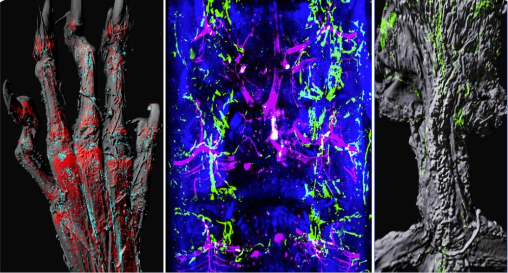 The network of lymphatic vessels extends throughout the body, but a small number of sites such as the brain, eye, and bone were previously assumed to lack lymphatic tissue. This study developed a new tissue clearing technology that enables three-dimensional light-sheet imaging of hard tissue at the organ level, revealing for the first time the presence of an active network of lymphatic vessels in bone and some of the key signals between lymphatic vessels, blood stem cells, and bone stem cells in a comprehensive manner.