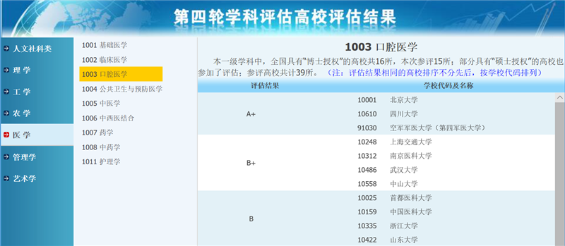 Graded A+ in Stomatology in China Discipline Evaluation by the Ministry of Education of China
